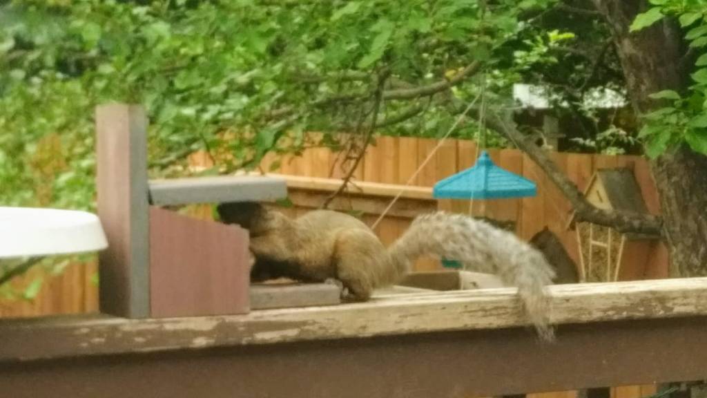Frank could see sunsets and rainbows. He saw storms, lightning and thunder. Some of the things he really loved watching were the squirrels that nested in the smart new house that Andrew had hammered to his trunk. He had watched the squirrel man come and close up the hole where they had been getting into Andrew’s roof. Ali and Andrew loved their garden. They had a sparkling fountain where the birds and animals could come and drink and bathe. They had bird feeders and Squirrel feeders and a big vegetable patch where delicious carrots and green beans and peas grew. Every morning they would come outside and fill the feeders with nuts and seeds for all the creatures to eat.